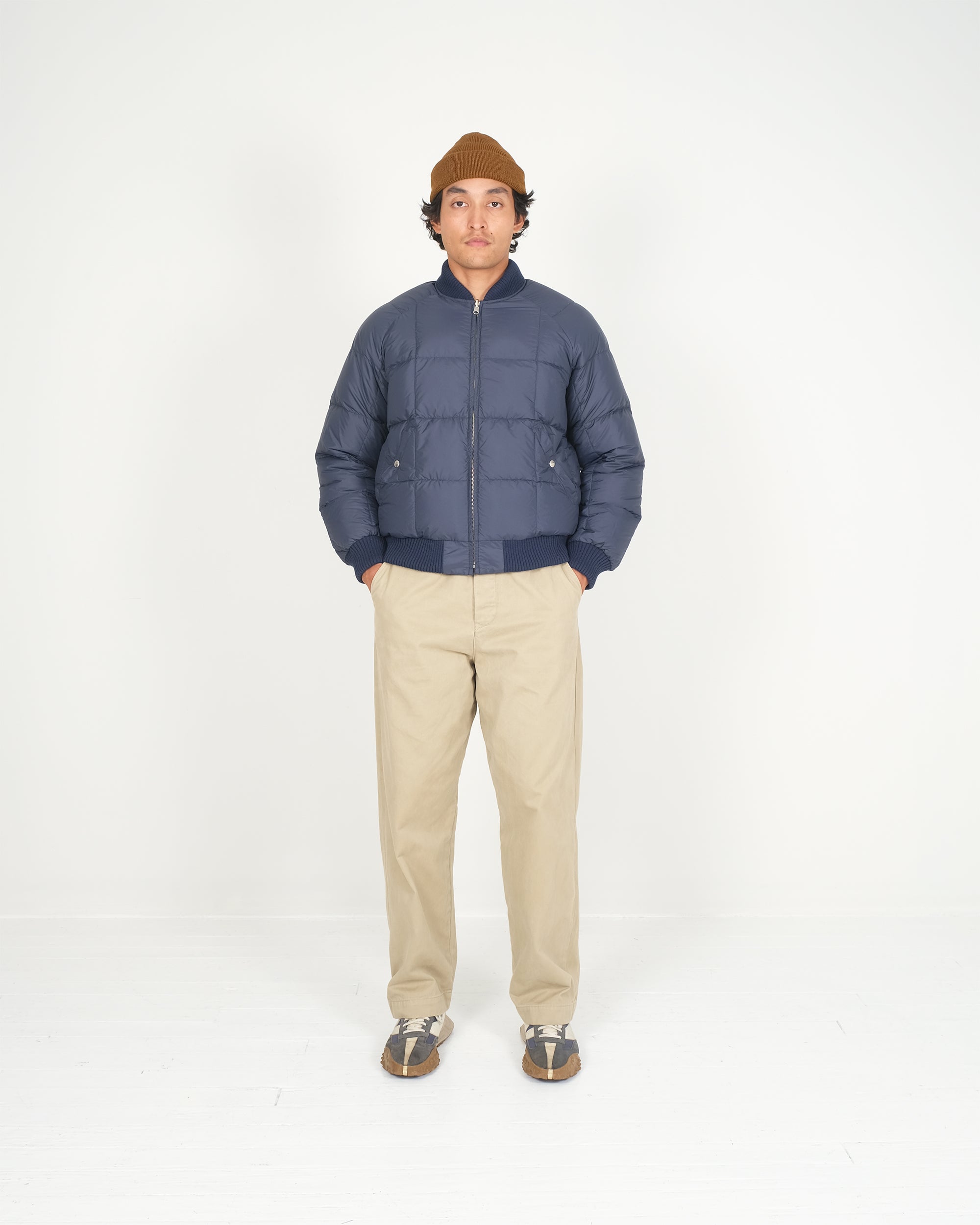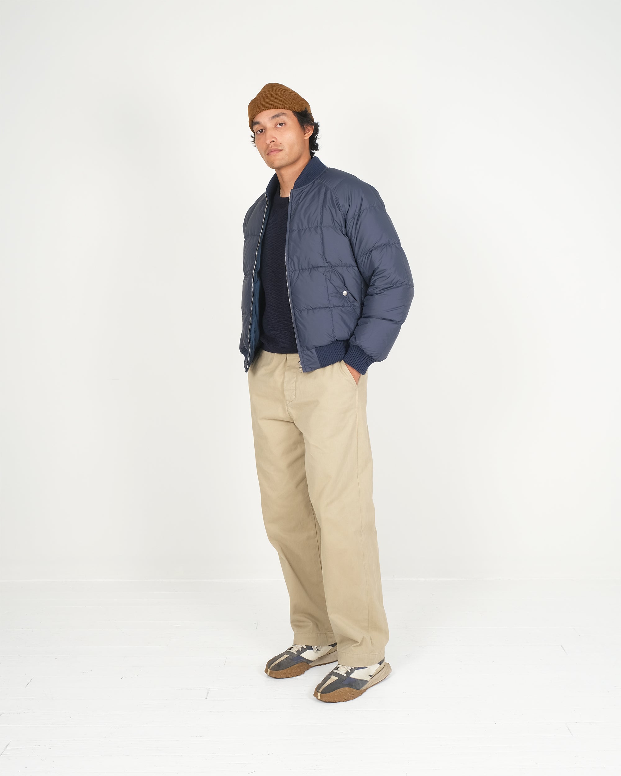 The Reversible Bomber is built around a timeless silhouette, elevated with Dehen knit trims and a fully reversible design.