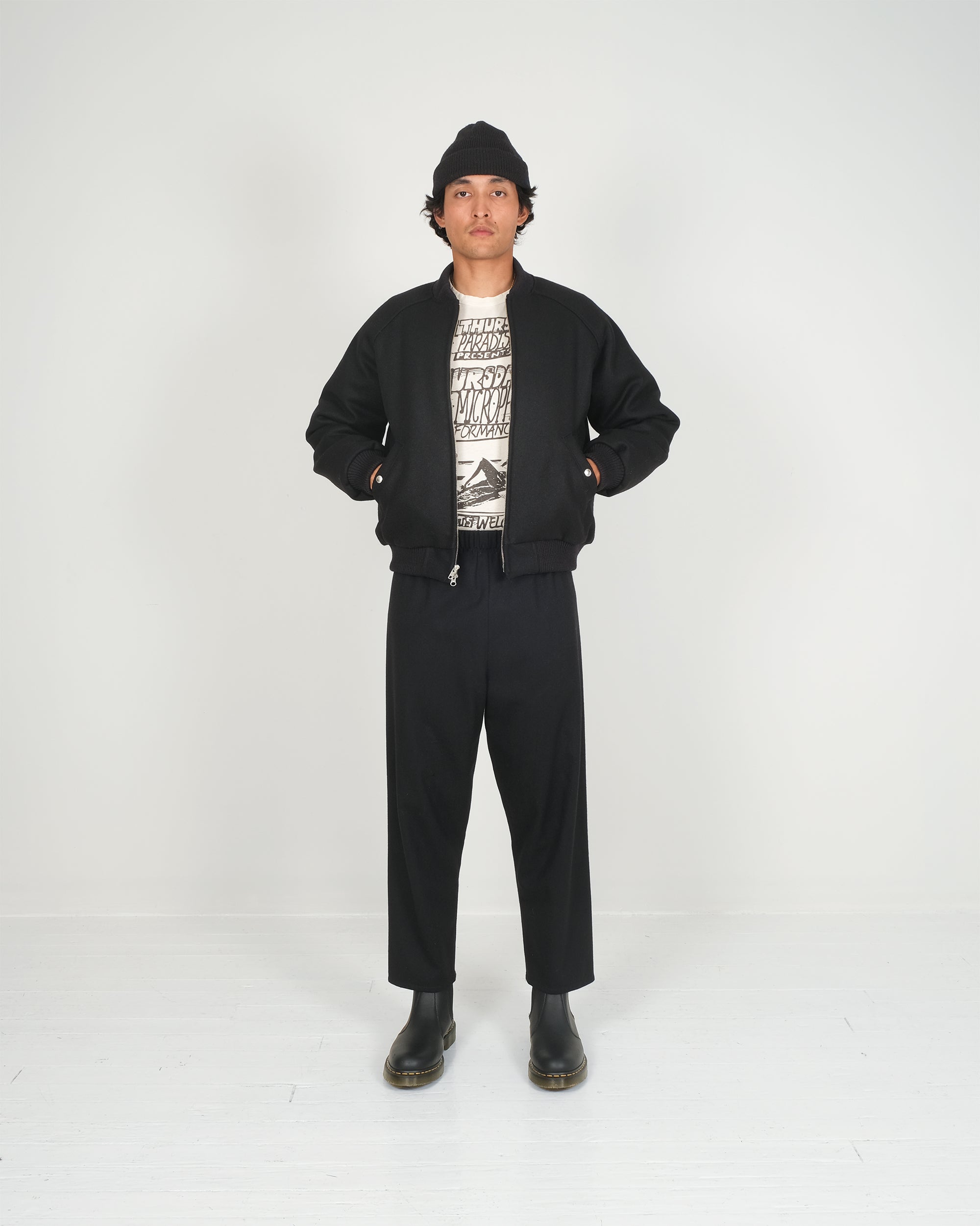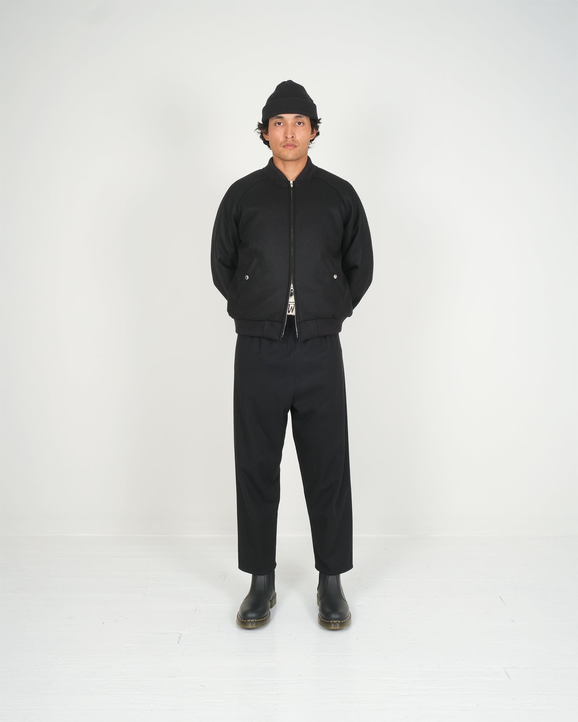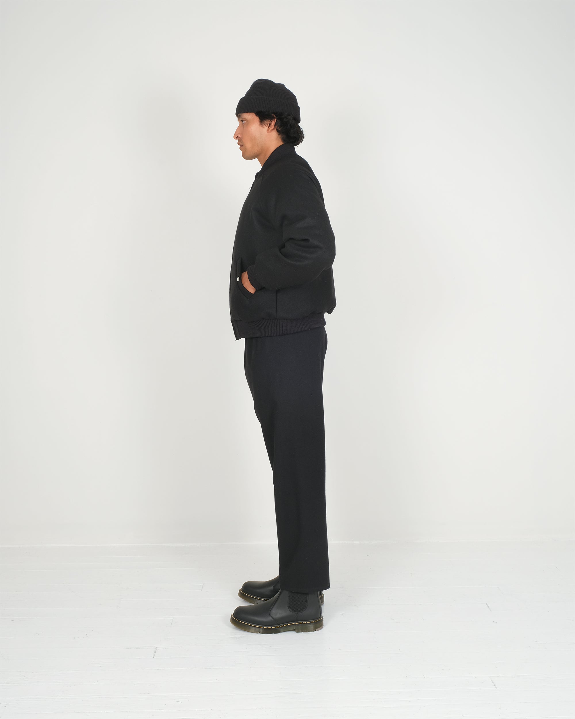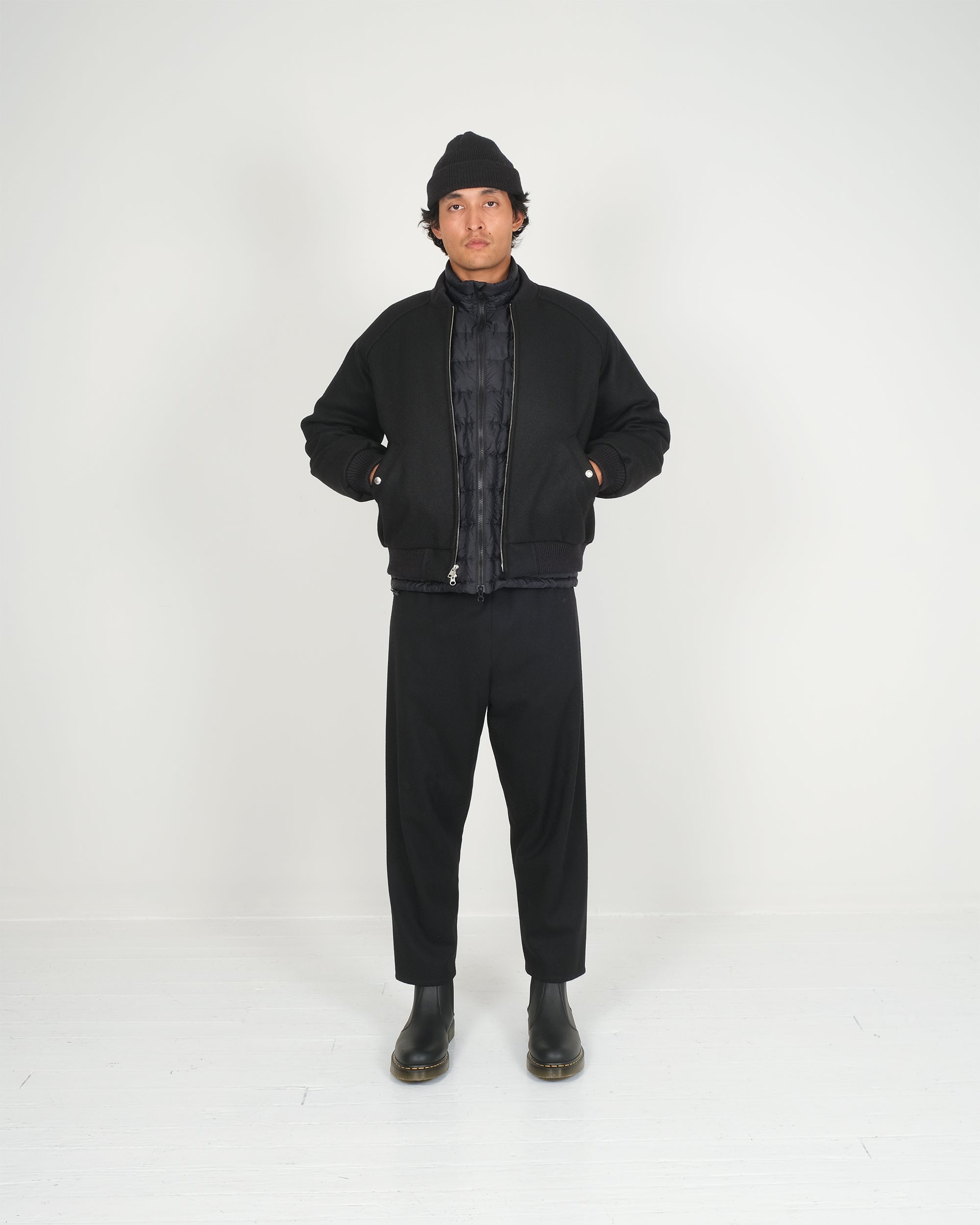 The Wool Bomber draws from the utilitarian roots of the classic flight jacket, reinterpreted through Crescent Down Works’ long history of working with down. Cut from Pendleton Melton wool and finished with Dehen knit trims, it pairs the clean, familiar lines of a bomber with the warmth and loft of down insulation.